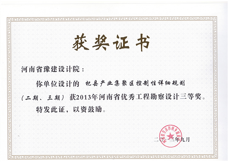 杞縣產(chǎn)業(yè)集聚區(qū)證獲獎證書-2013年獲獎證書-公司榮譽