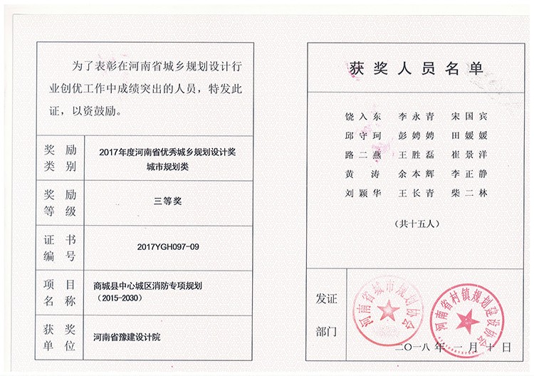 商城縣中心城區(qū)消防專項(xiàng)獲獎(jiǎng)證書(shū)