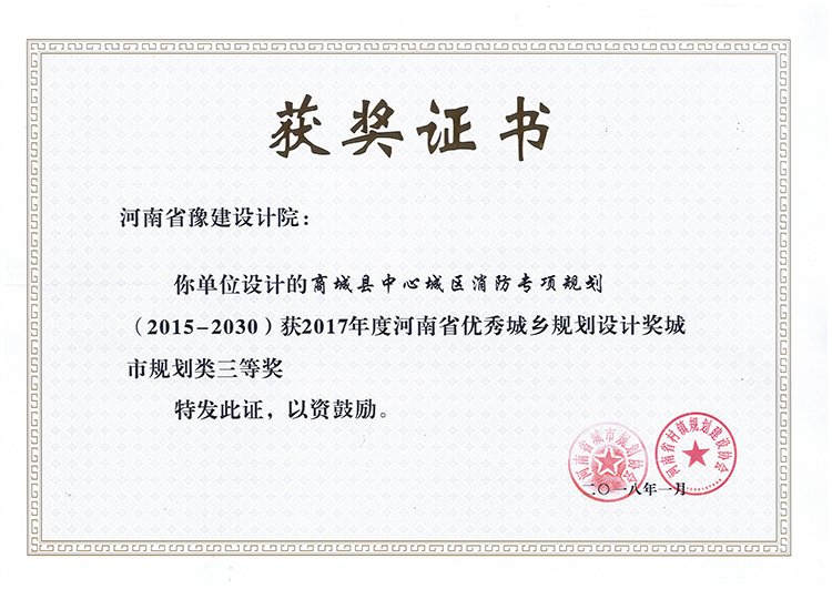 商城里羅城村建設(shè)規(guī)劃獲獎證書