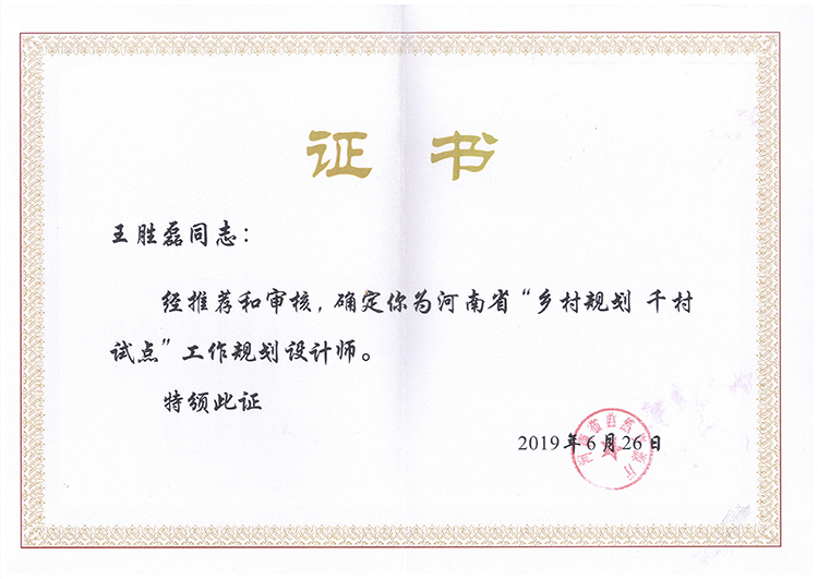 王勝磊下鄉(xiāng)規(guī)劃師證書-下鄉(xiāng)規(guī)劃師證書-公司榮譽