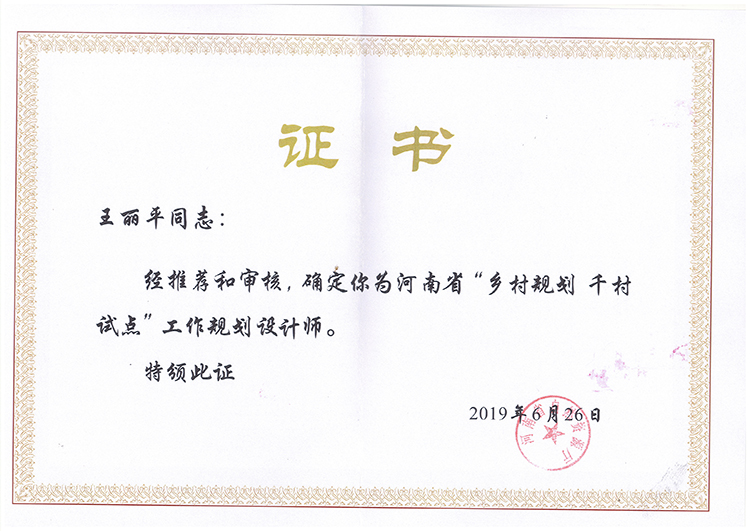 王麗平下鄉(xiāng)規(guī)劃師證書-下鄉(xiāng)規(guī)劃師證書-公司榮譽(yù)
