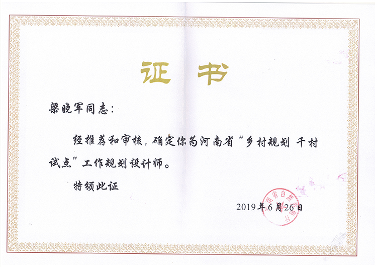 梁曉軍下鄉(xiāng)規(guī)劃師證書-下鄉(xiāng)規(guī)劃師證書-公司榮譽