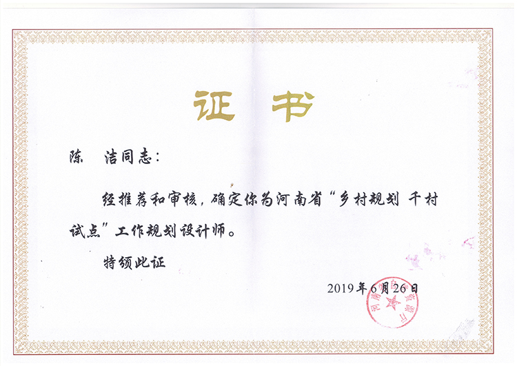 陳潔下鄉(xiāng)規(guī)劃師證書-下鄉(xiāng)規(guī)劃師證書-公司榮譽(yù)
